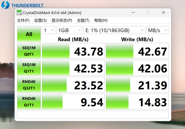 既然是数据线,那么传输数据同样是它们的重要任务。在这一环节的测试中,我们的测试电脑仍然使用华为MateBook X Pro 2024款,测试的外接存储设备为宇瞻AS2280Q4 2TB NVMe固态硬盘搭配优越者S245B固态硬盘盒。