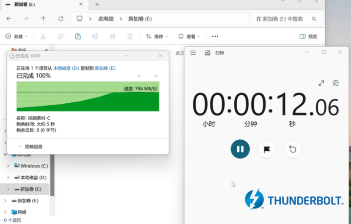 在这一轮测试中,两条原厂数据线就与毕亚兹雷电4数据线产生非常大的差距了,无论是在文件传输时长,还是在理论读写速率的表现上,都远远弱于毕亚兹雷电4数据线,甚至拉出了近一百倍的差距。这是因为两款原厂数据线都采用了USB2.0协议,最大读写速率仅为480MBps,这也符合原厂数据线主要服务于充电场景的设计考量,而毕亚兹雷电4数据线则采用了Intel®Thunderbolt™ 4技术,最大传输带宽可达40Gbps,用于数据传输的带宽可以达到32Gbps,从实测数据来看,传输一个10GB大文件的实际用时仅为12秒,在传输速率的测试中也达成了3750MB/s的最大读取速度,即30Gbps,与32Gbps的理论数据相差很小,也接近了硬盘本身读取的最大速度。