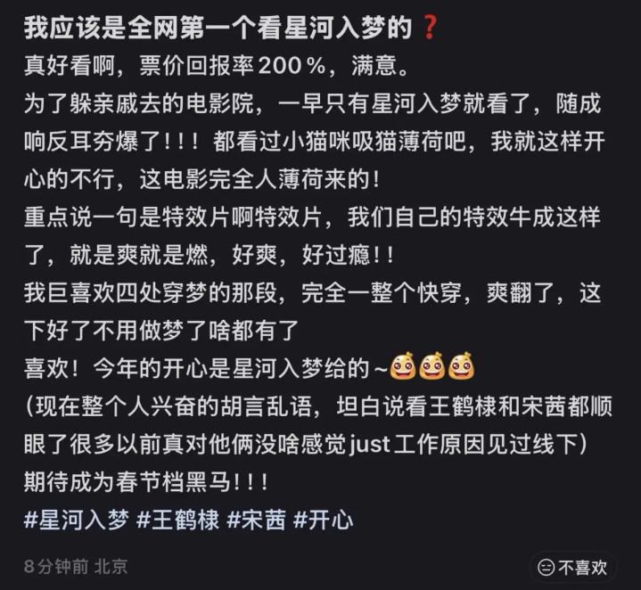 股票配资交易网《星河入梦》第一波影评 欢迎大家春节来看我们小星河